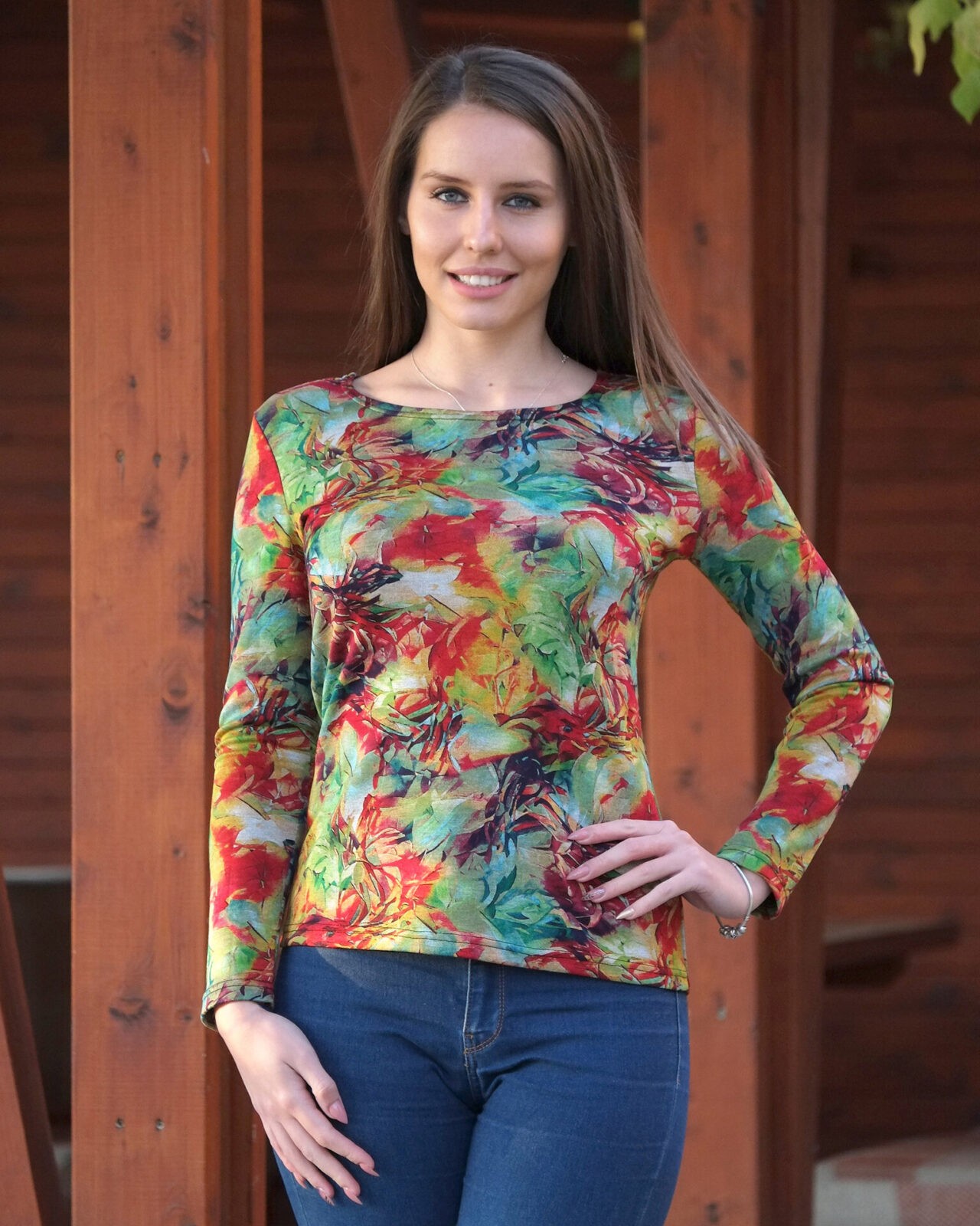 Блуза памук/полиестер с дълъг ръкав.