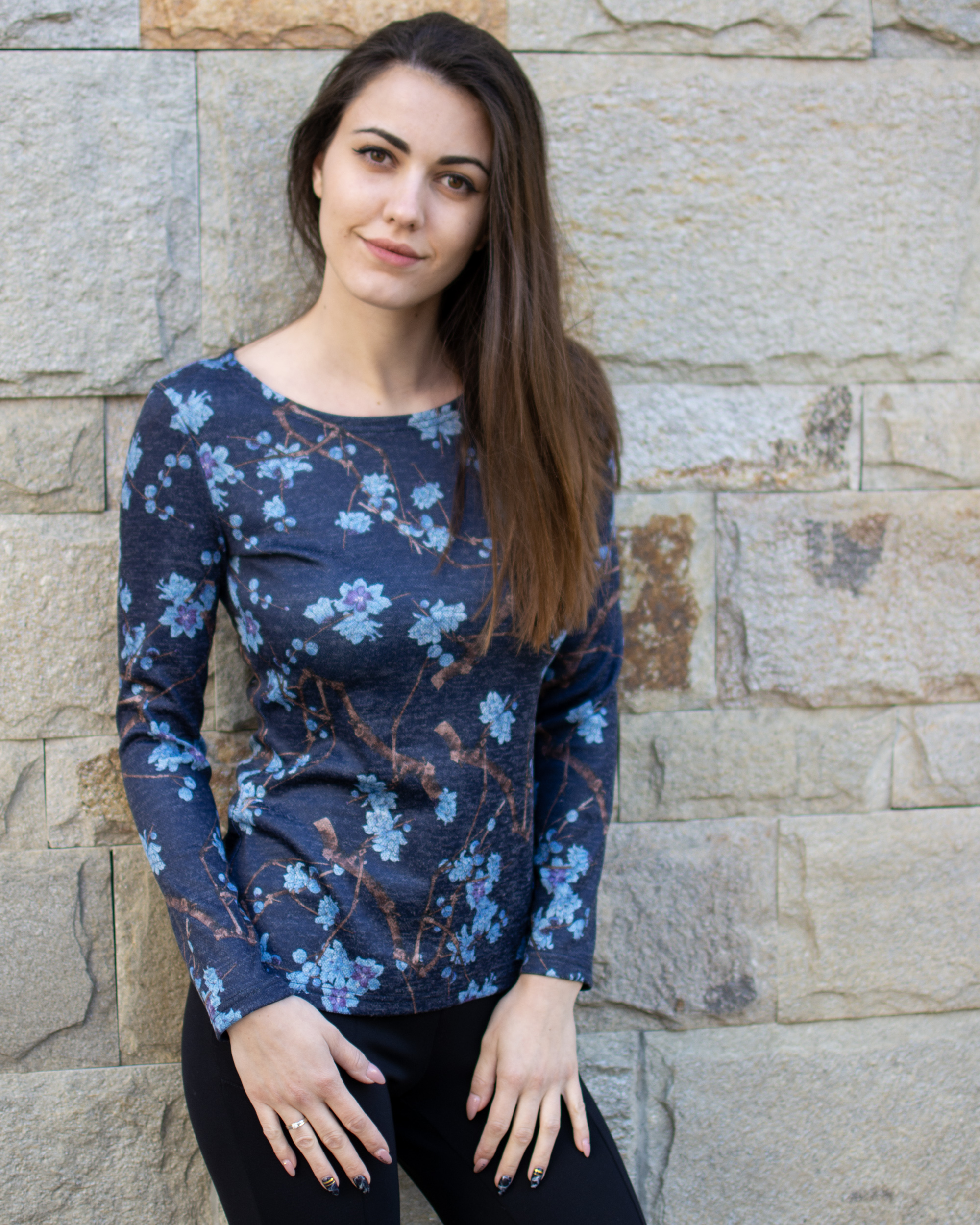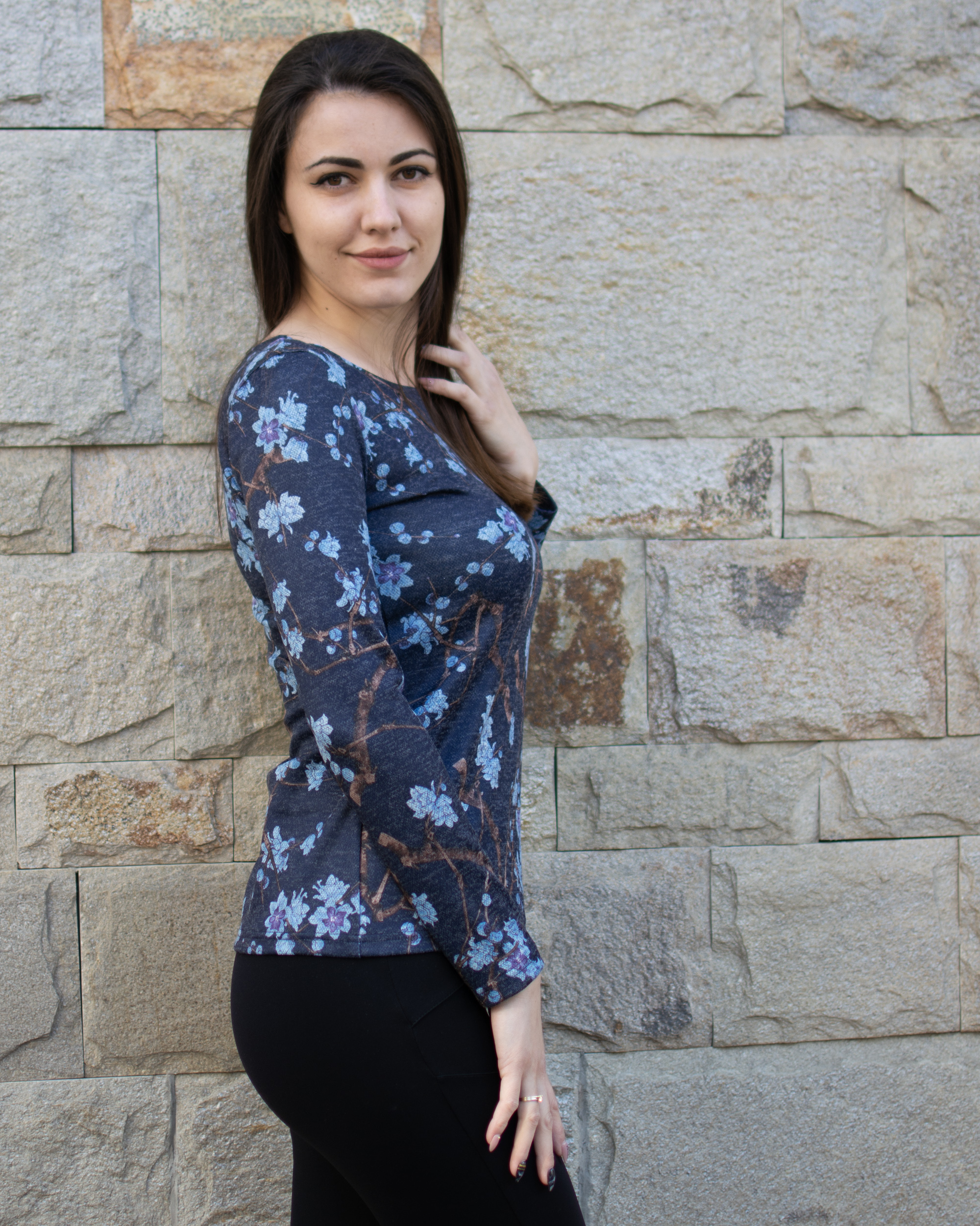 Приятна, мека материя с флорална щампа в сини нюанси и класическа изчистена кройка, подходяща блуза за ежедневната ви визия.