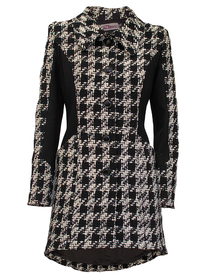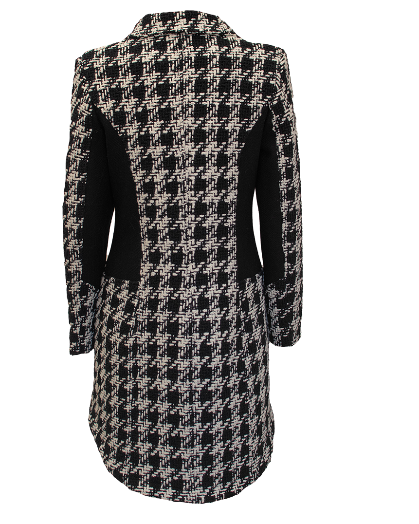 Удобно и стилно дамско вълнено палто в черно и бяло. Бъдете красиви и топли в студените дни.