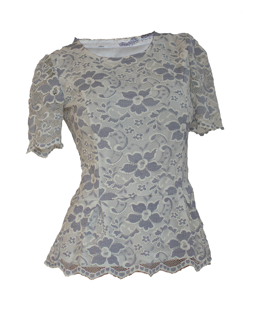 СЪСТАВ НА ДАМСКА БЛУЗА С ДАНТЕЛА В СИВО И БЯЛО