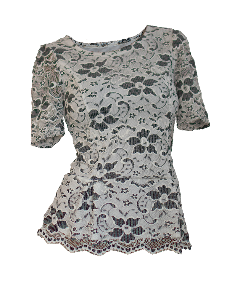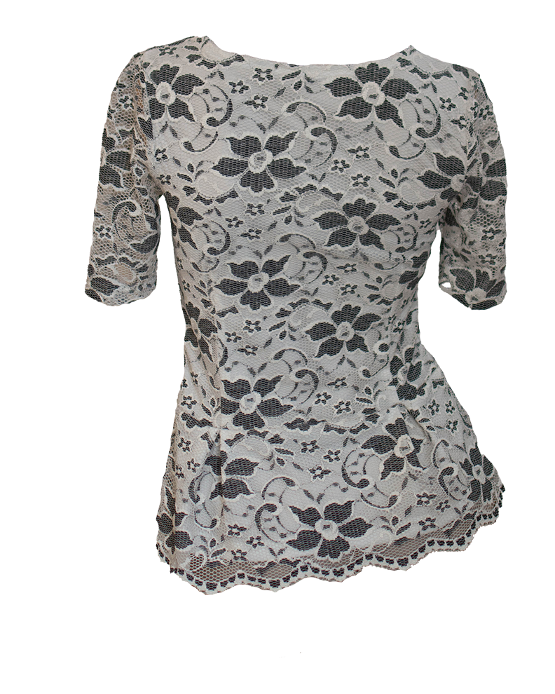 СЪСТАВ НА ДАМСКА БЛУЗА С ДАНТЕЛА В ЧЕРНО И БЯЛО