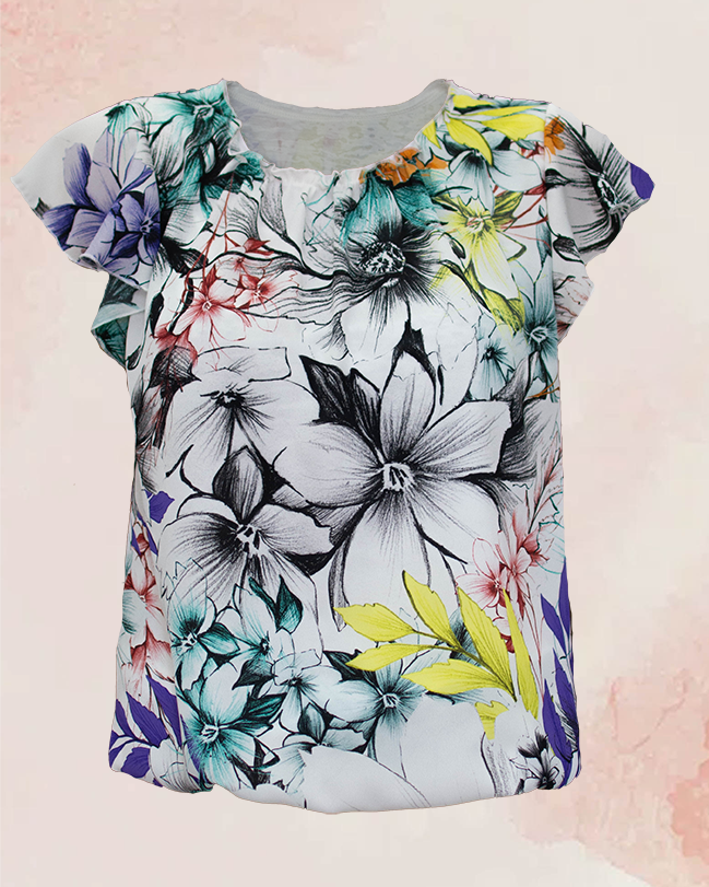 Дамска блуза с къс ръкав в красиви цветни комбинации