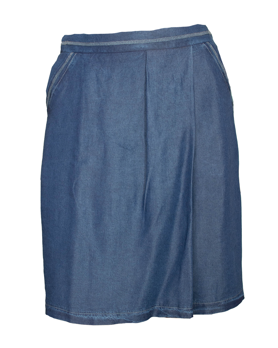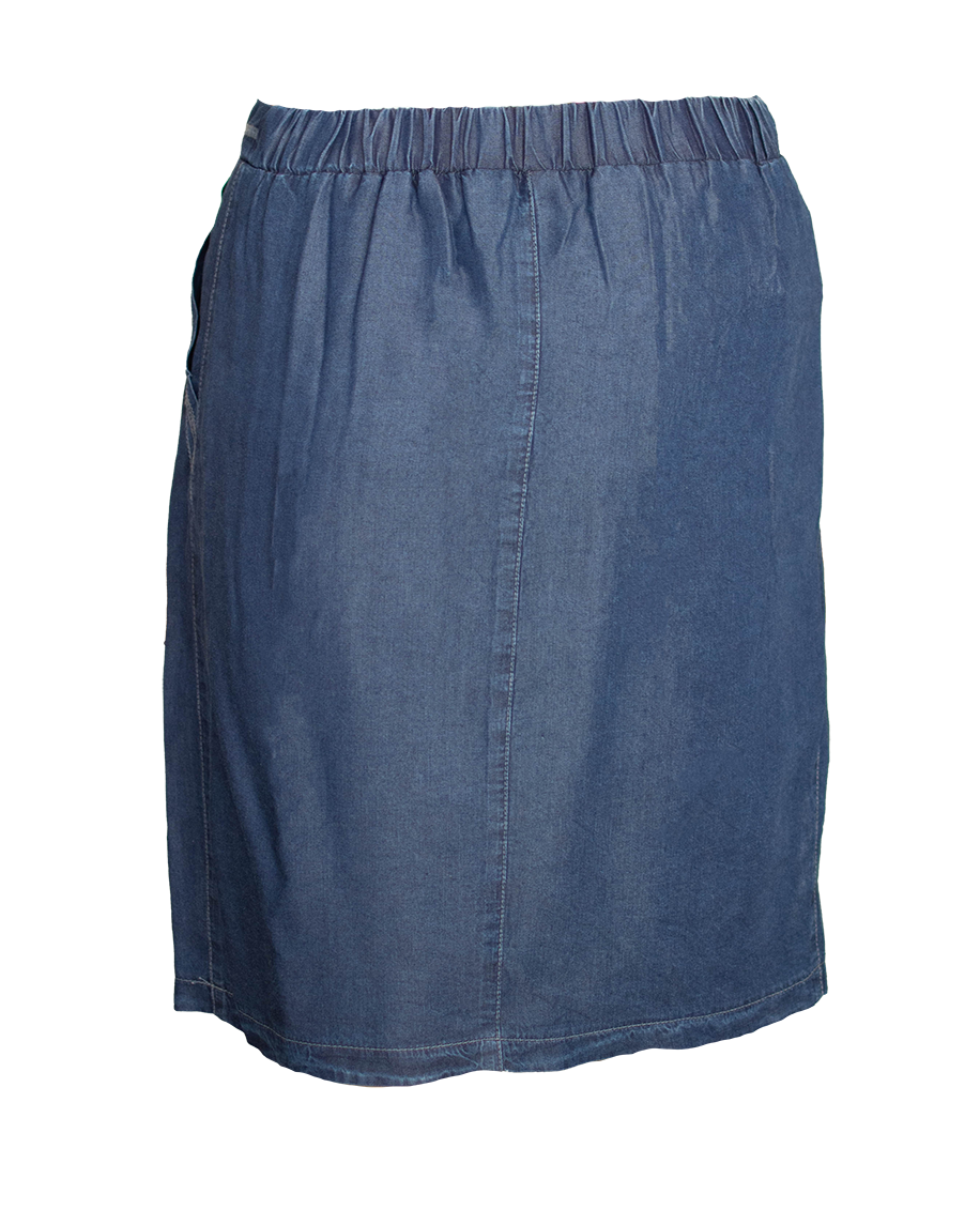 Дънкова пола с чупки и ластик в талията