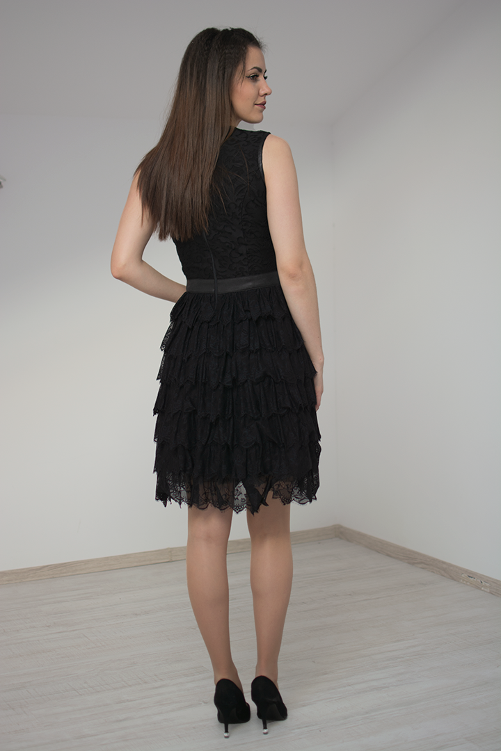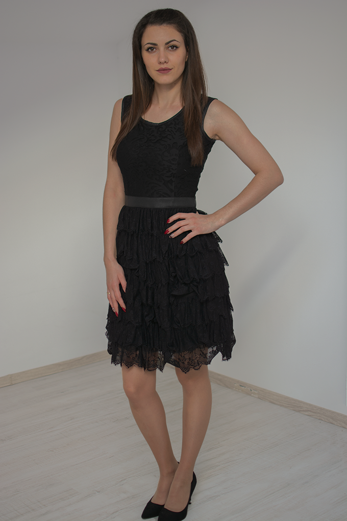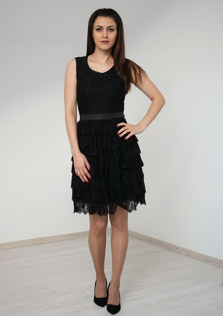Красива кокетна рокля с дантелени воали и красиво коланче, подчертаващо талията. Изключително удобен и стилен модел.