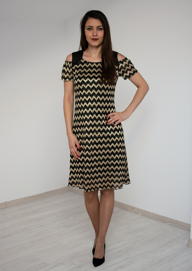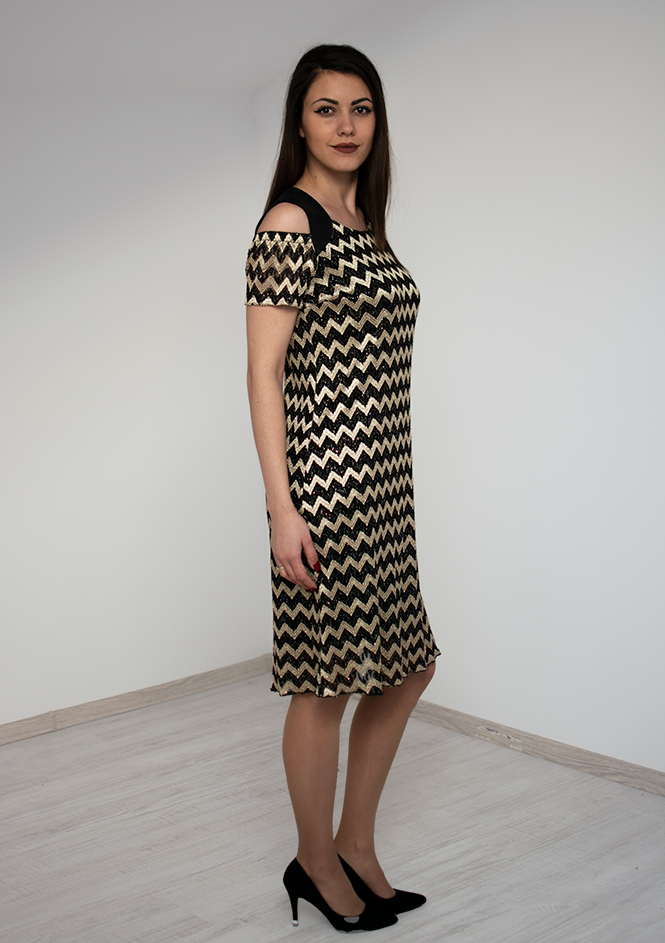 Един изключително удобен, стилен и красив модел дамска рокля със златен десен, който ще ви накара да болестите и очаровате околните..