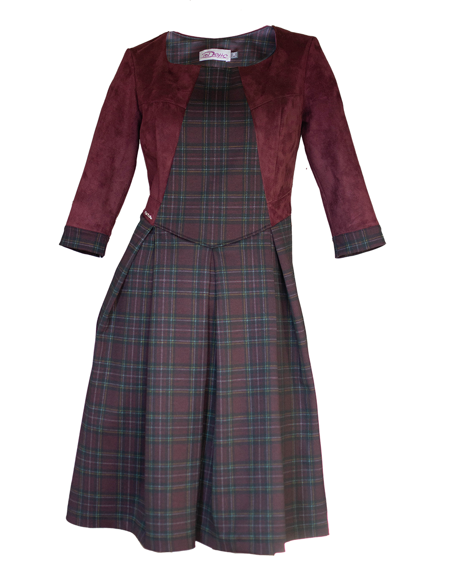 СЪСТАВ НА ДАМСКА РОКЛЯ КАРЕ С ВЕЛУРЕН РЪКАВ