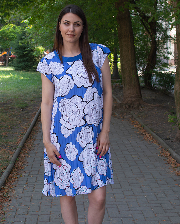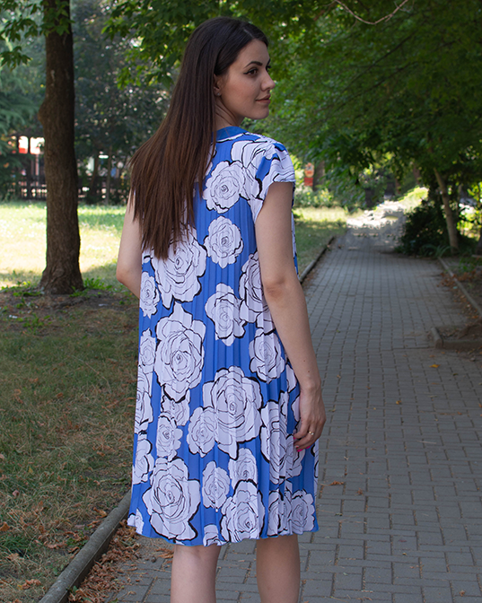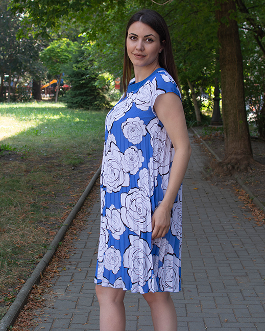 СЪСТАВ НА ДАМСКА РОКЛЯ ПЛИСЕ БЕЛИ ЦВЕТЯ