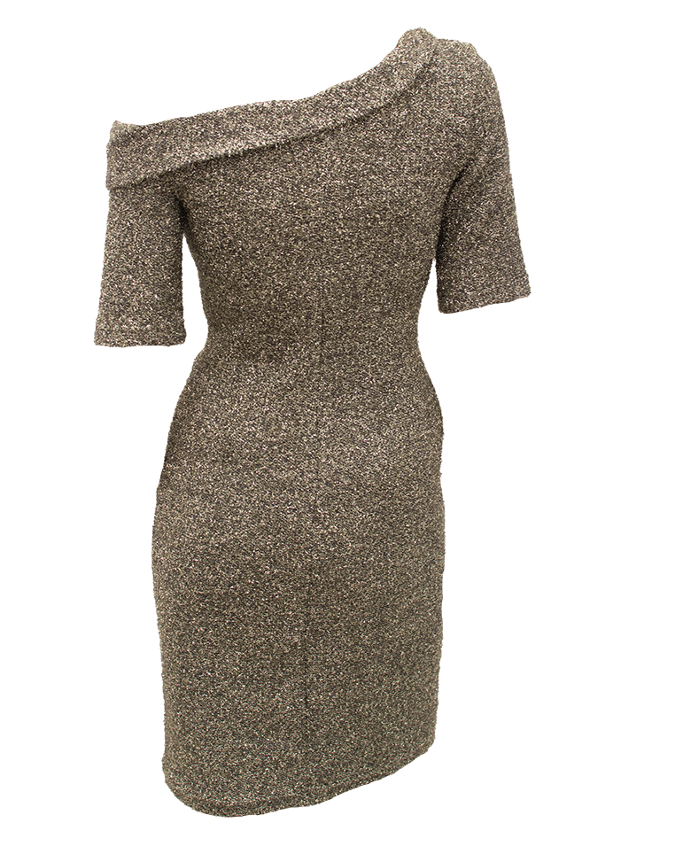 Страхотен модел, стилна и удобна елегантна рокля паднал ръкав. Материята е плетена със златисто ламе.