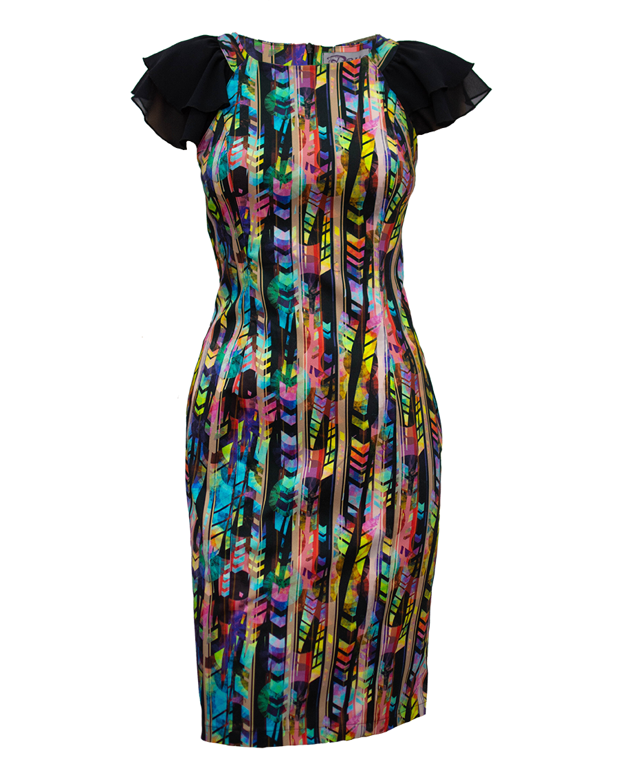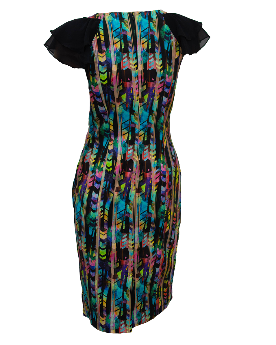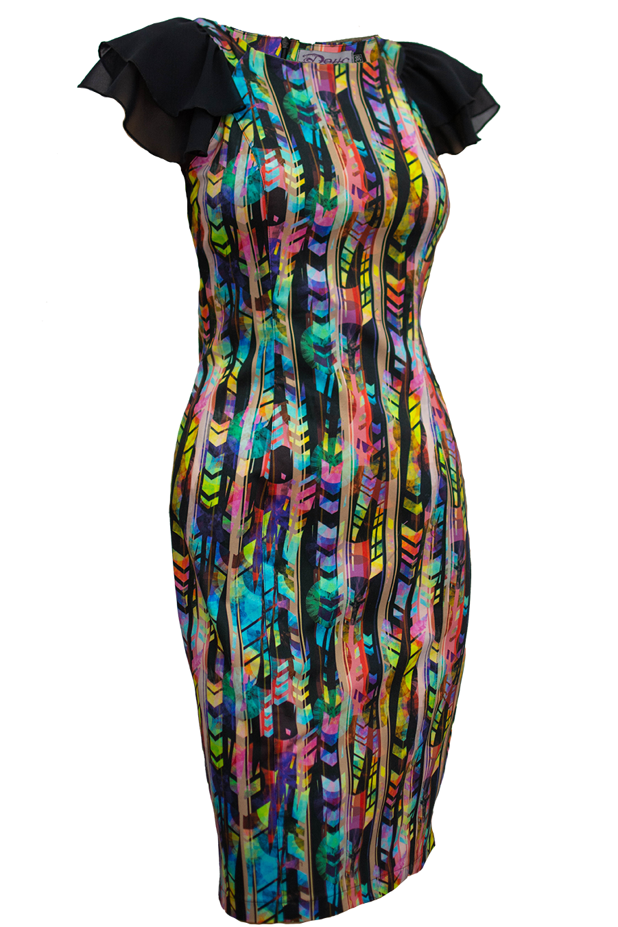 Стилна и елегантна дамска рокля с красив цветен дизайн .