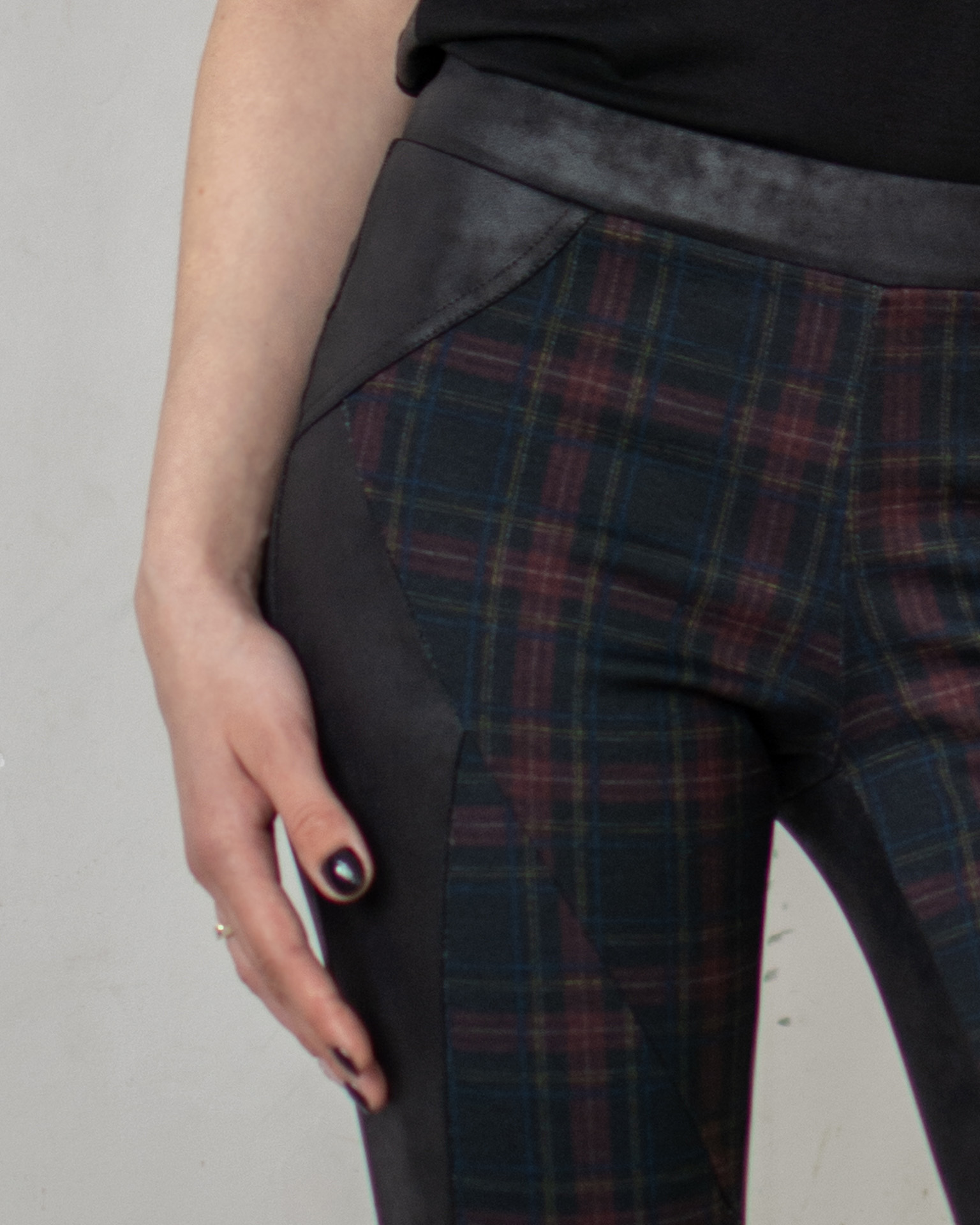Дамски клин от еластична материя с лъскав ефект, съчетана с еластично каре.