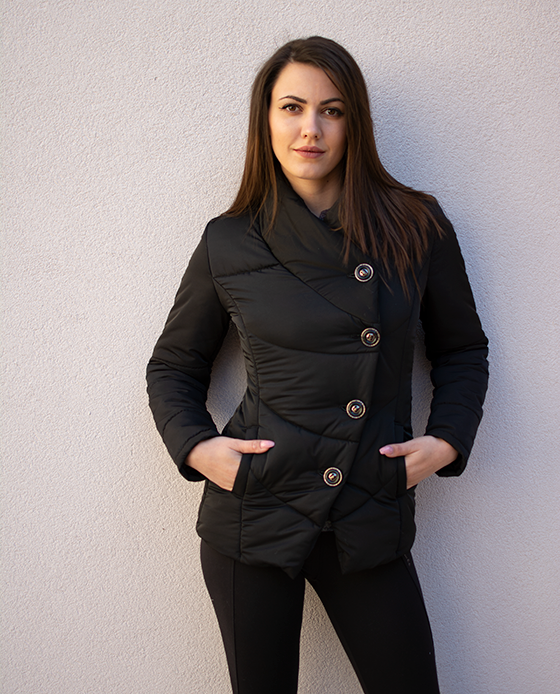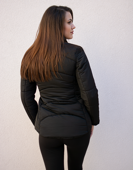 Страхотно дамско яке в черен цвят, асиметрично закопчаване, подходящо за студените и влажни дни.