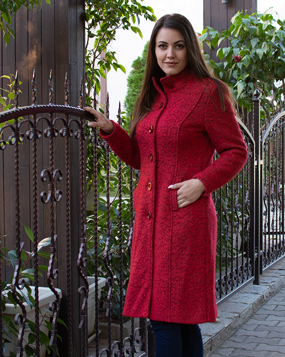 Подгответе се за есенно-зимния сезон с актуален модел палто, съставено от меланжирано букле. Ще бъдете впечатляваща с него! Вталената кройка ще подчертае талия Ви. Можете да го носите самостоятелно или в комбинация с топ или блуза. Съчетайте с втален панталон или с пола тип „молив“.