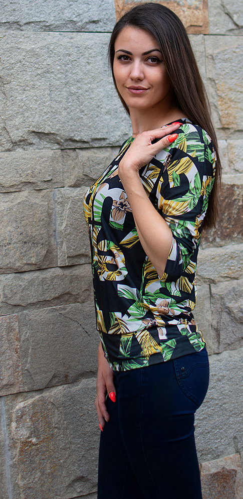 Ежедневна блуза със 7/8 ръкав от приятна и мека вискоза. Щампата е свежа и се съчетава лесно с дънки или спортно елегантен екип.