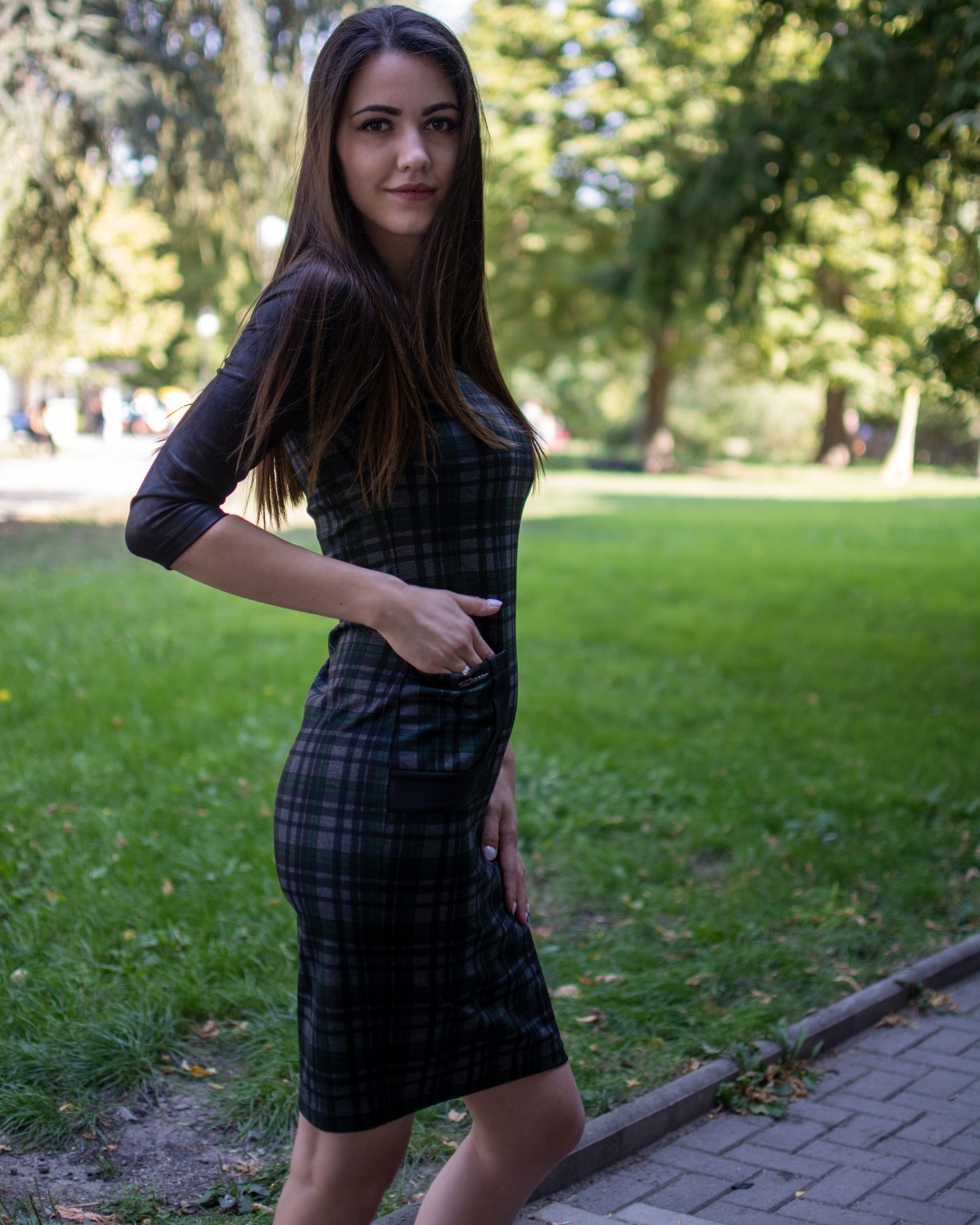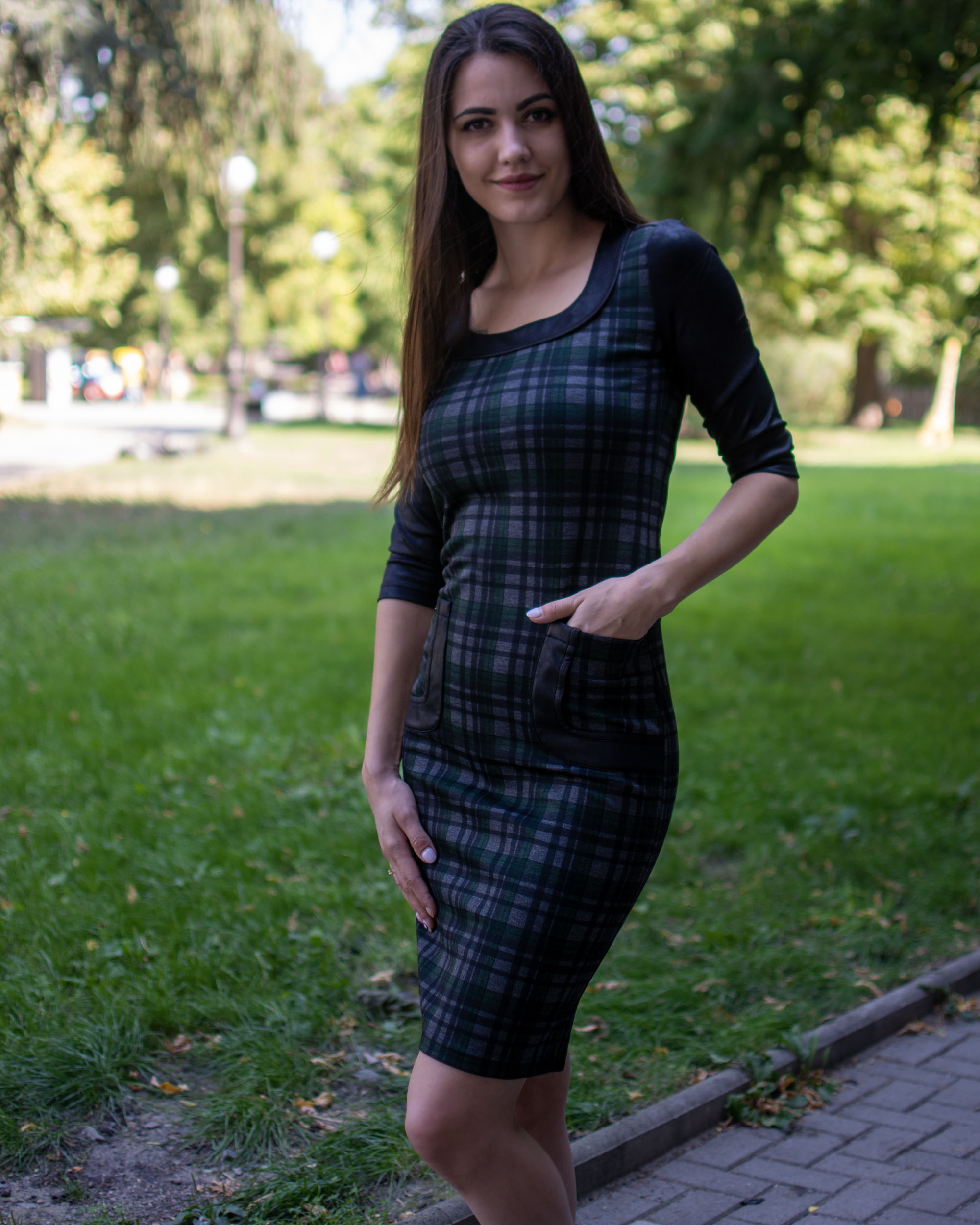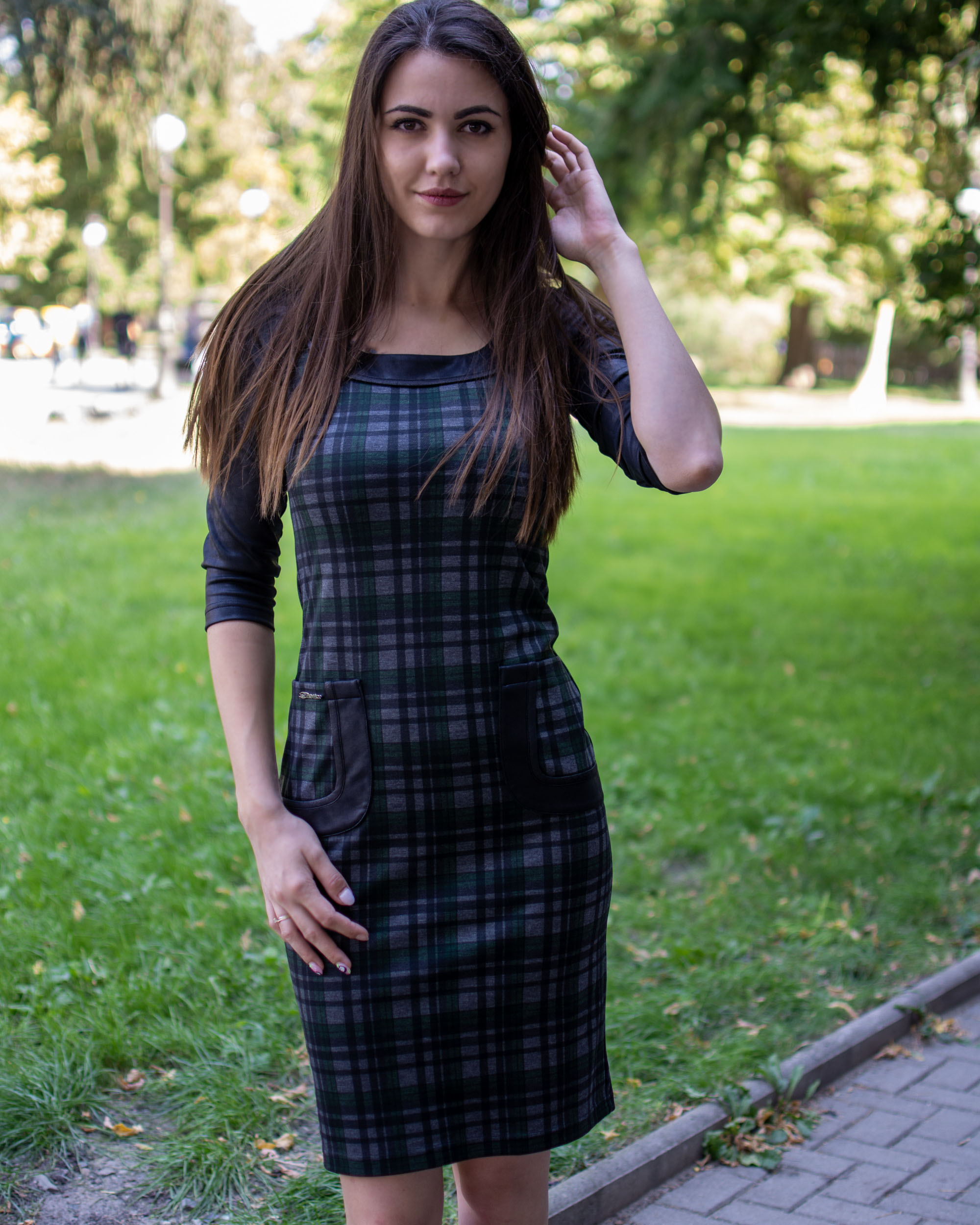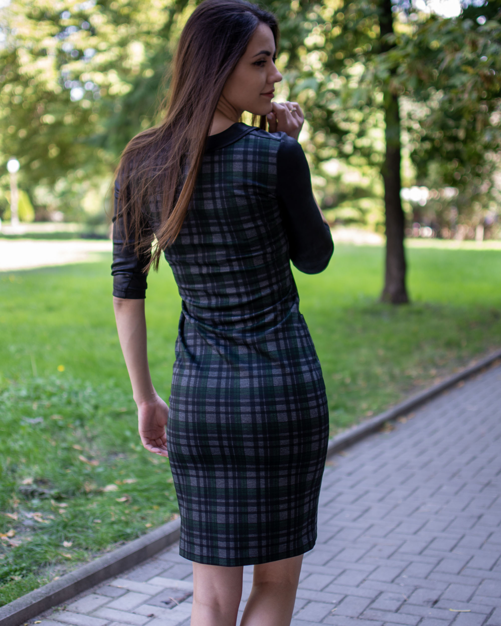 Елегантна рокля изработена от стегнато, еластично и плътно каре и съчетание от мека материя имитираща кожа, предаваща стил и перфектна визия.