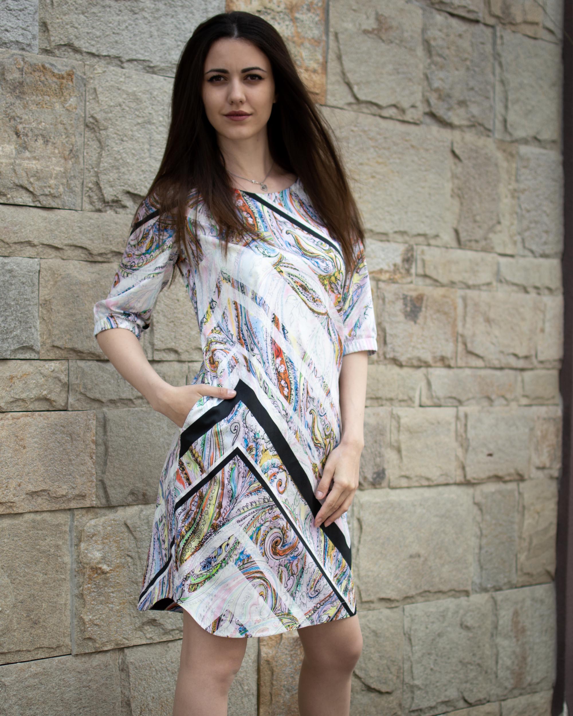 ИНФОРМАЦИЯ ЗА ЕЖЕДНЕВНА РОКЛЯ С АСИМЕТРИЧНА ЩАМПА