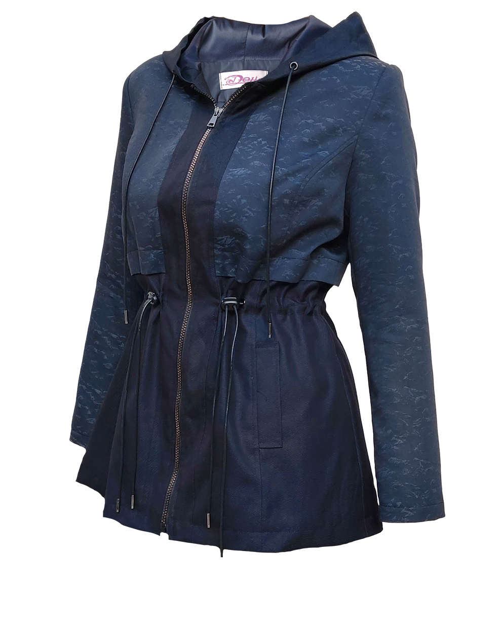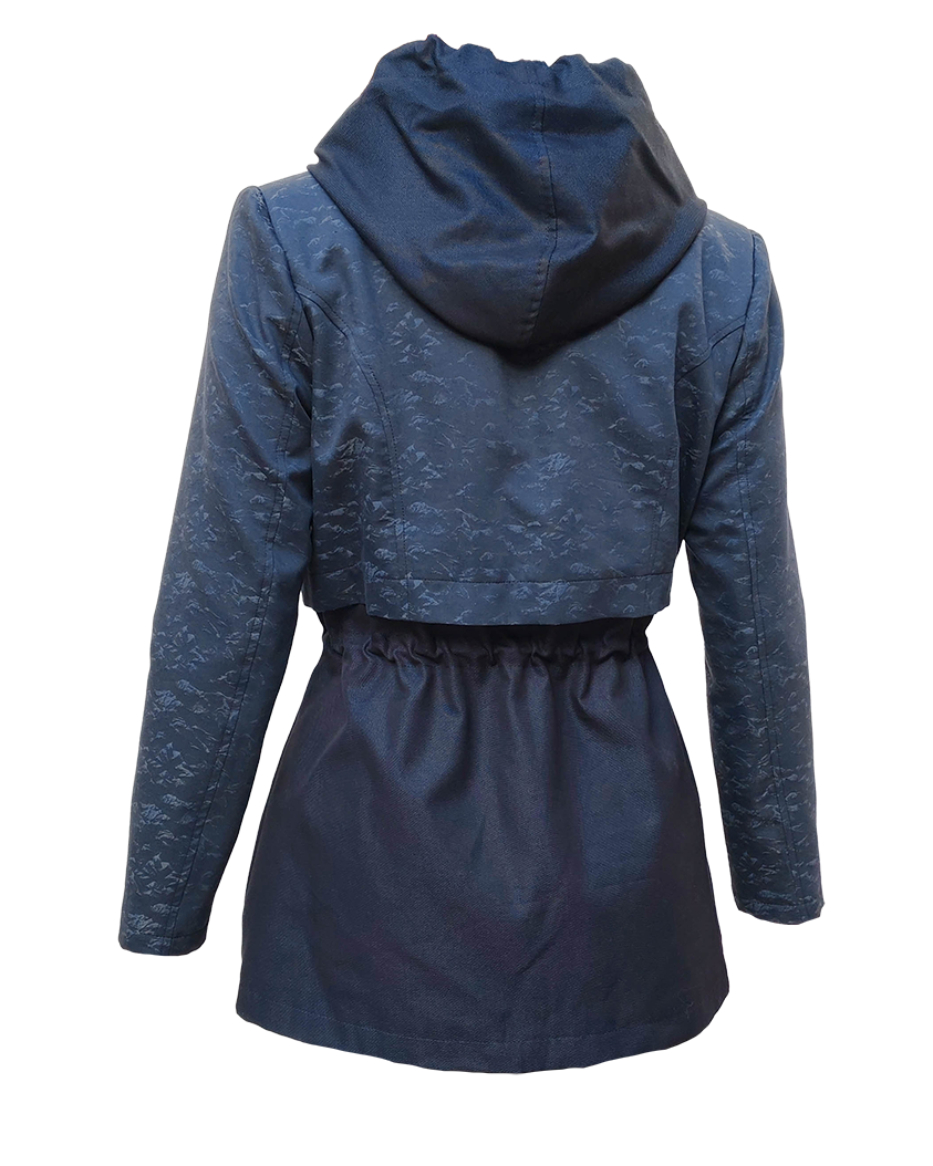 Шлиферът е с регулираща връзка в талията, която позволява прецизно оформяне на силуета и придава женствена линия. Комбинацията от гладка материя и текстуриран ефект в горната част създава интересен и елегантен завършек. Стилен и удобен шлифер, който допълва ежедневната визия с лекота и модерно излъчване.