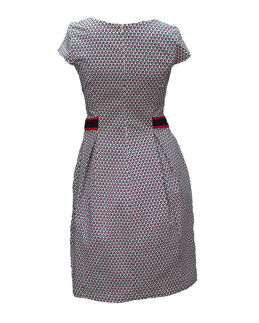 СЪСТАВ НА ЕЛЕГАНТНА ДАМСКА РОКЛЯ С ЧЕРВЕН ПАСПЕЛ