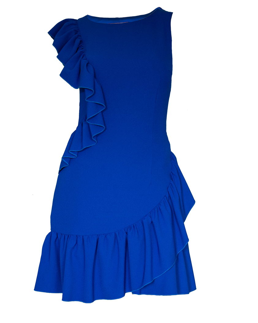 ИНФОРМАЦИЯ ЗА ЕЛЕГАНТНА ДАМСКA РОКЛЯ С КЪДРИЧКИ В СИНЬО