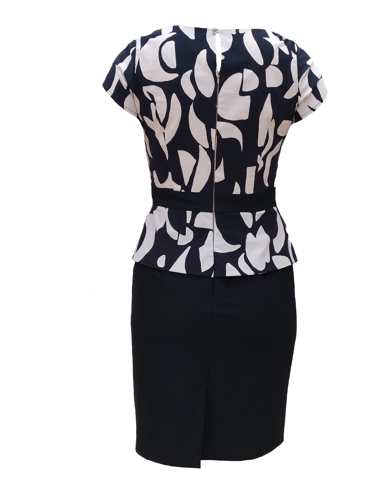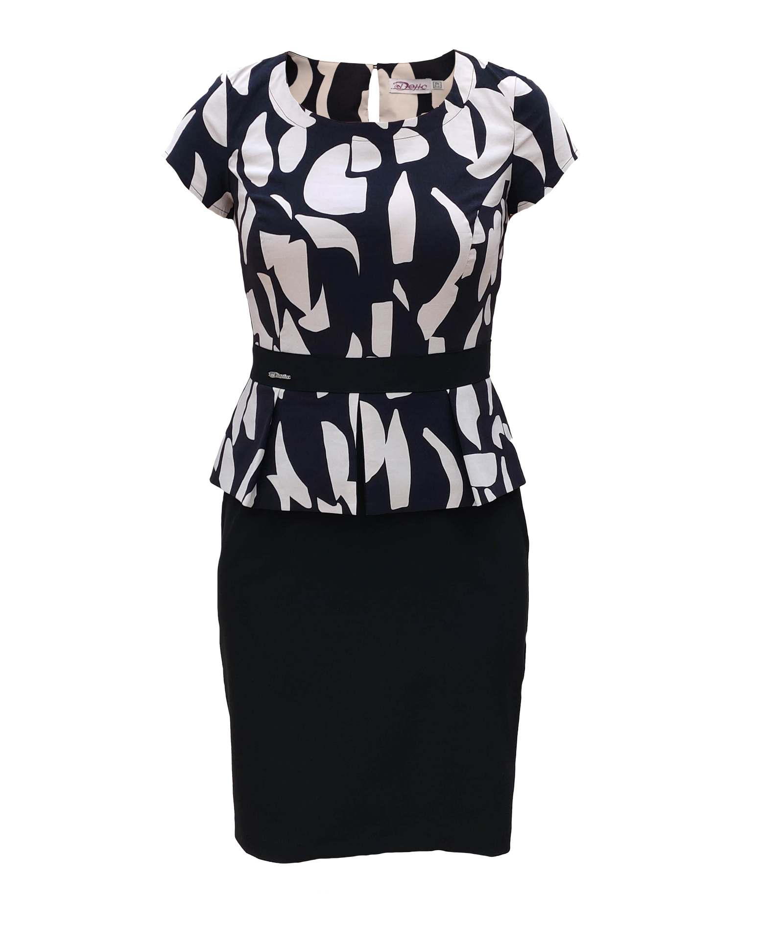 Стилна и модерна дамска рокля, съчетаваща класическа черна пола с ефектна горна част. Моделът е създаден, за да подчертае женствеността и да придаде изискан силует във всяка ситуация.