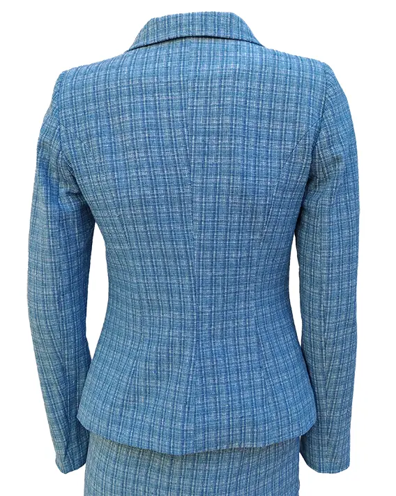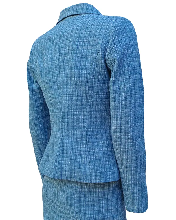 Добавете нотка на елегантност и увереност към визията си с това дамско сако в стилно синьо каре. Изработено от висококачествен памук с финна меланжирана нотка , сакото предлага удобство, прецизна кройка и изчистена линия, която подчертава силуета. Комбинирайте с пола в същия десен за изискан бизнес комплект или носете отделно с дънки за смарт кежуал визия.