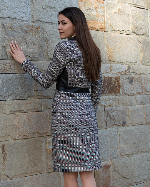 Стилно дамско сако, изработено от висококачествен памучен жакард. С пластрон и кожено коланче, което придава завършен вид.