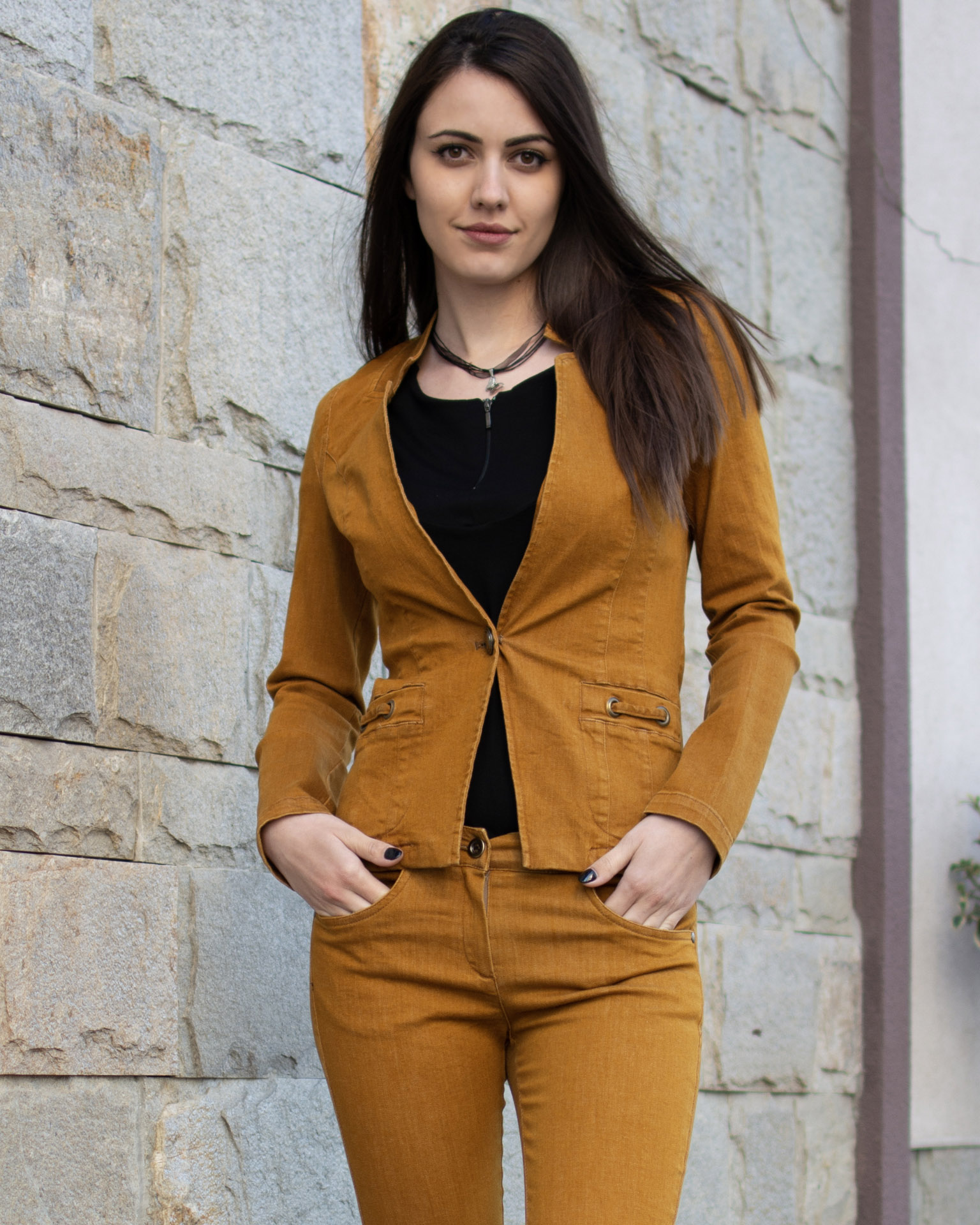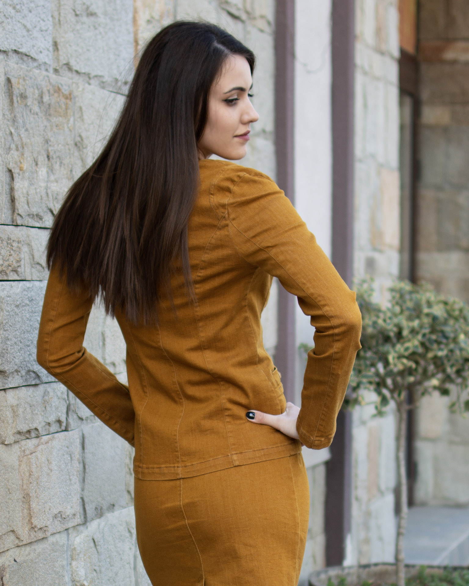 СЪСТАВ НА ЕЛЕГАНТНО ДЪНКОВО САКО ГОРЧИЦА