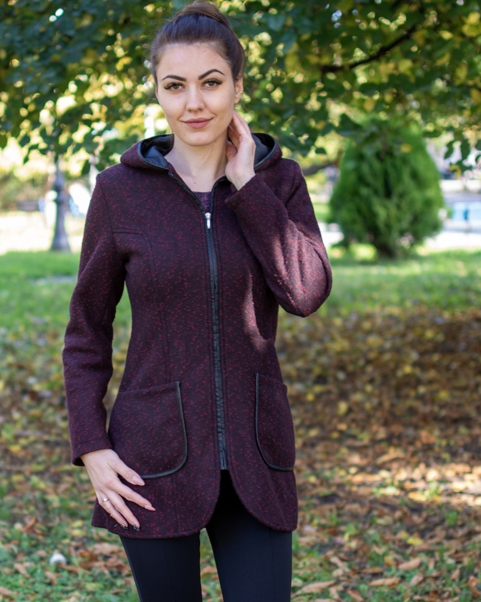 Тази вълнена жилетка ще ви стане любима…- стегната вълнена материя в приятен меланж, с цип и качулка, подходяща за всеки ден.