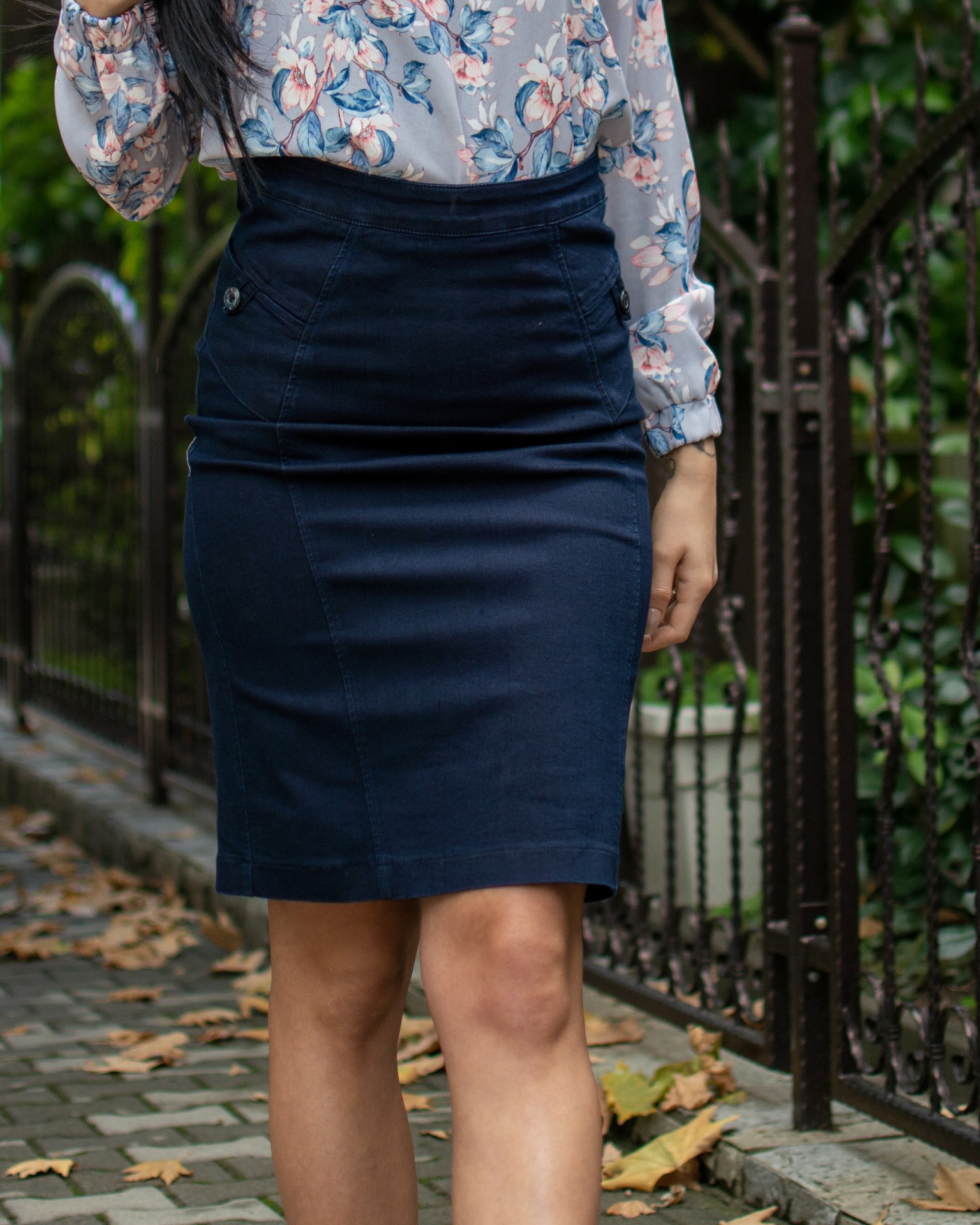 Права пола с шлиц от силно еластична дънкова материя в цвят индиго.