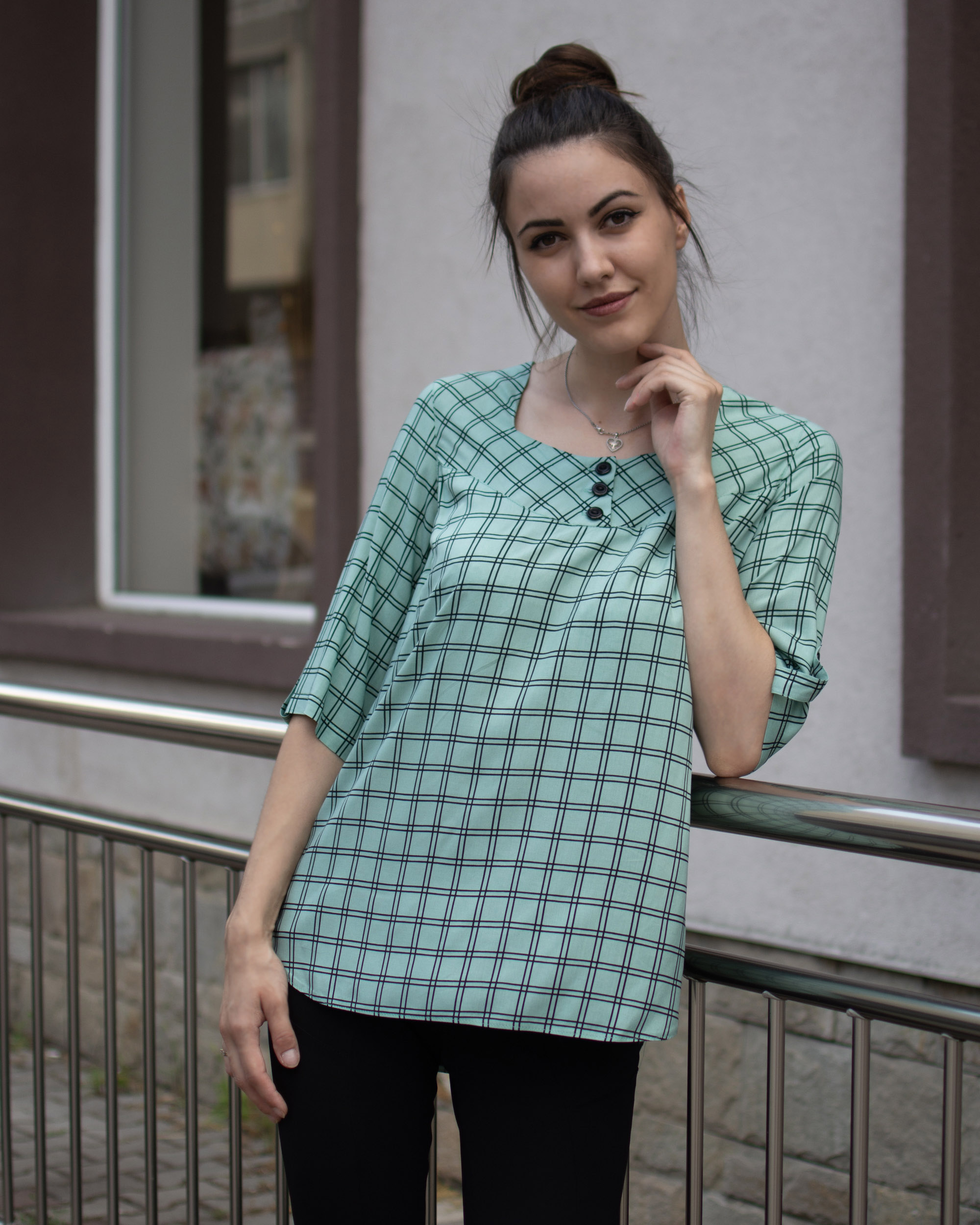 Елегантна туника каре в зелен цвят.