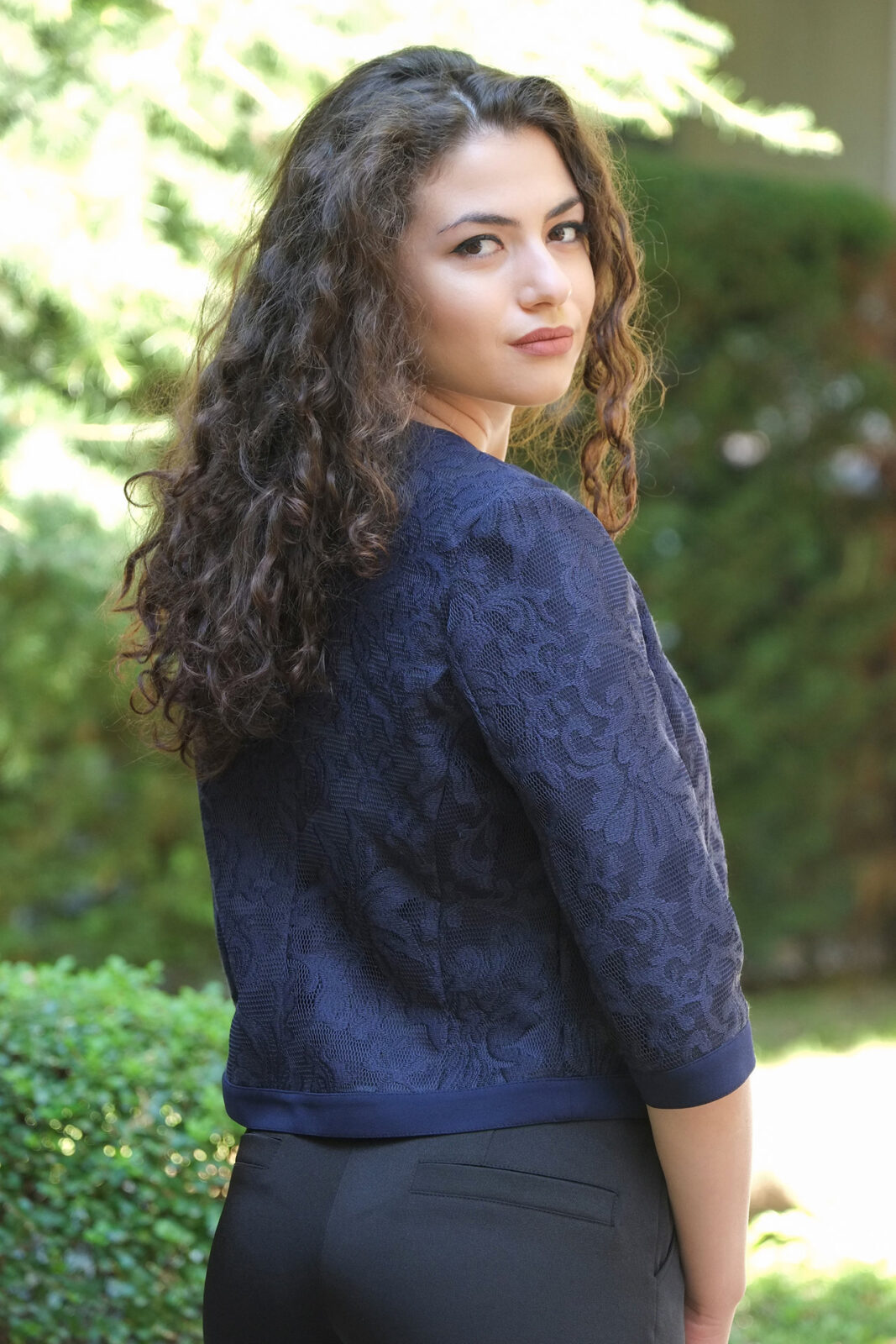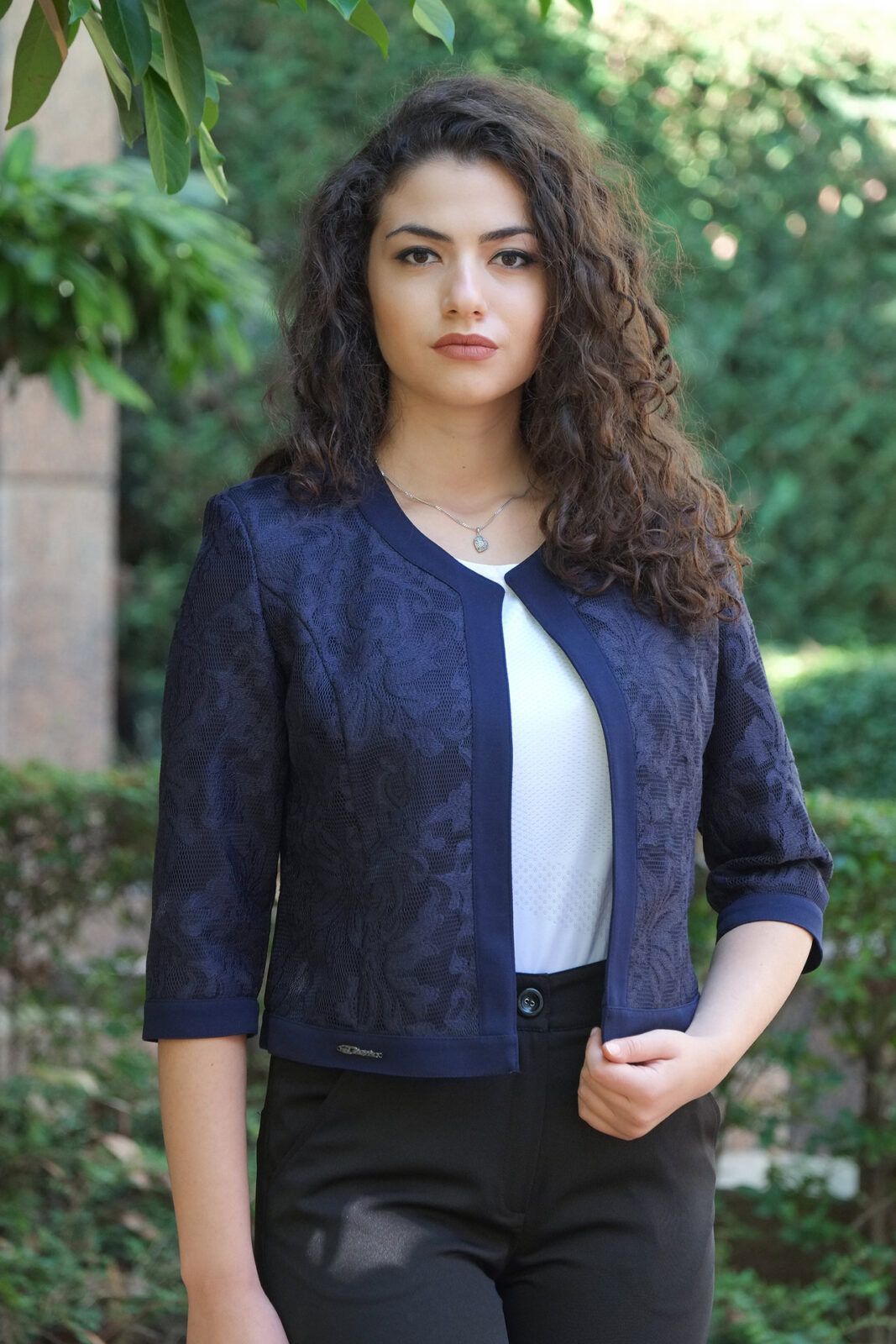 Късо сако от дантела, без копчета. Сакото е с хастар.