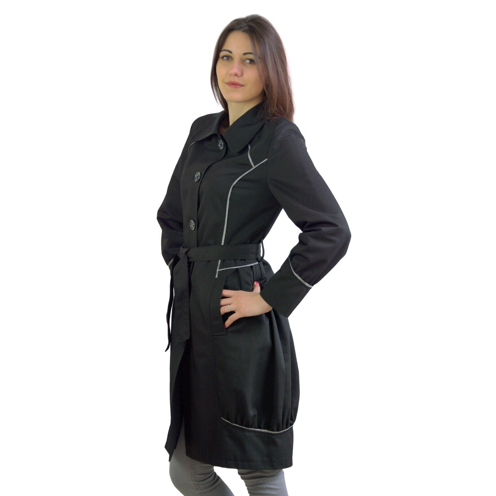 Манто от промазан плат в черен цвят. С подплата. Подходящ за хладните дни. В долната част е леко оширено.