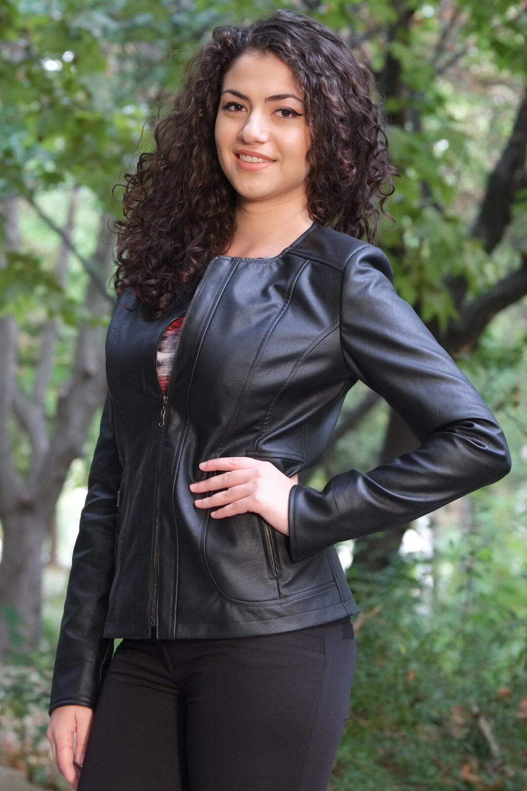 Когато започнат хладните сутрини и понижението на температурите, ние ще повишим настроението ви със стилно яке от кожа в черен цвят и елегантна визия.