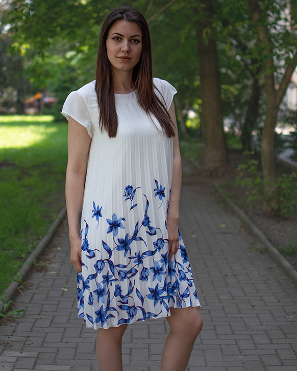 СЪСТАВ НА ДАМСКА РОКЛЯ ПЛИСЕ СИНИ ЦВЕТЯ