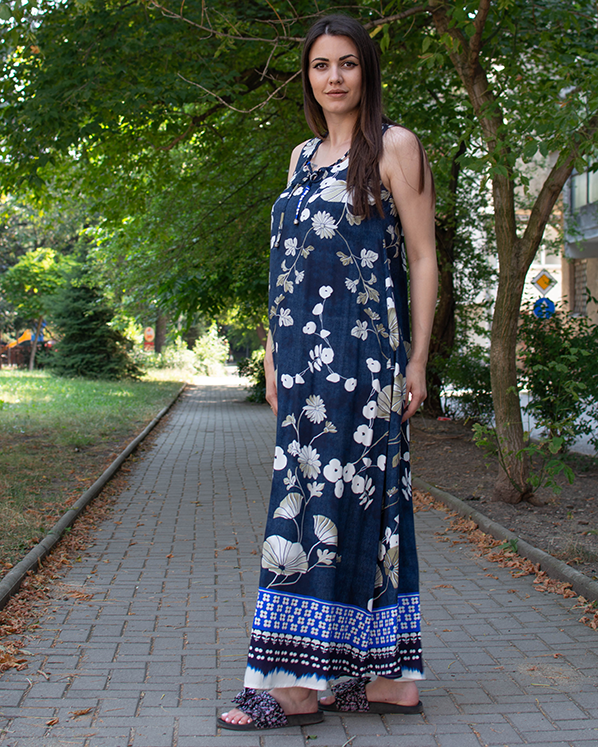 СЪСТАВ НА ДЪЛГА ДАМСКА РОКЛЯ С ЦВЕТЯ